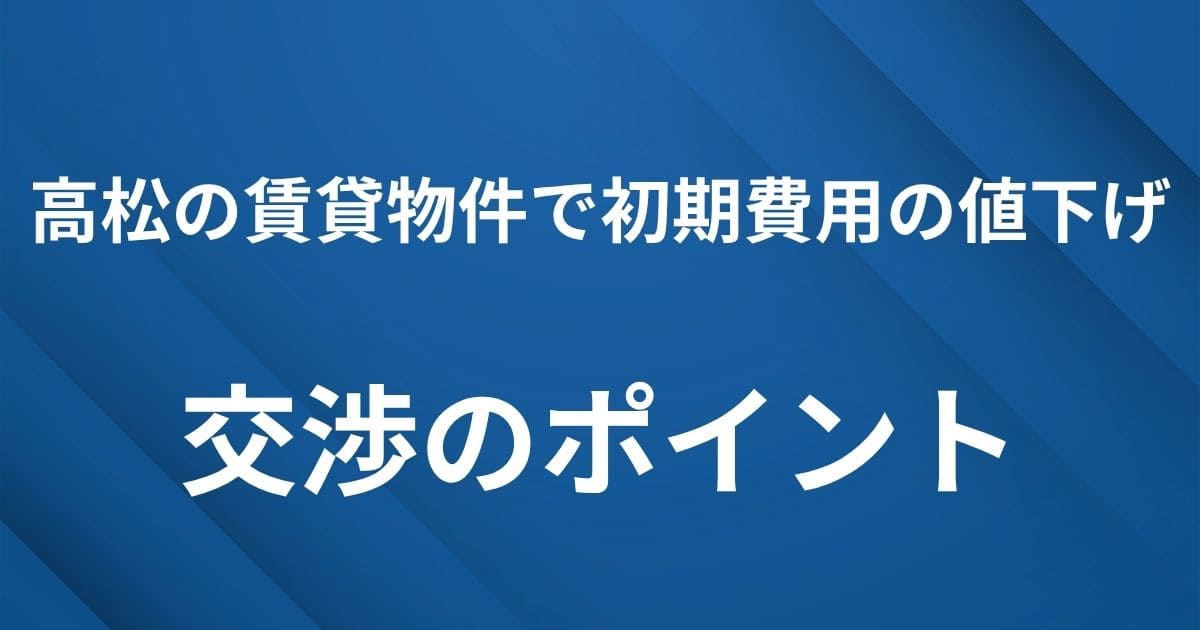 高松の賃貸物件で初期費用値下げ交渉を成功させるポイント